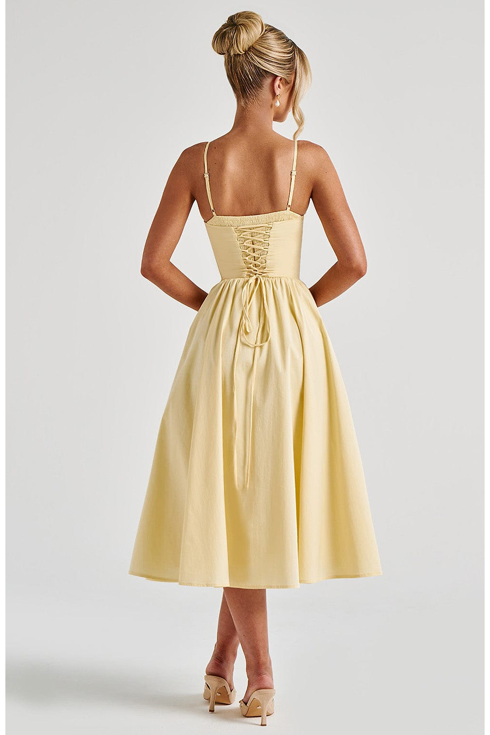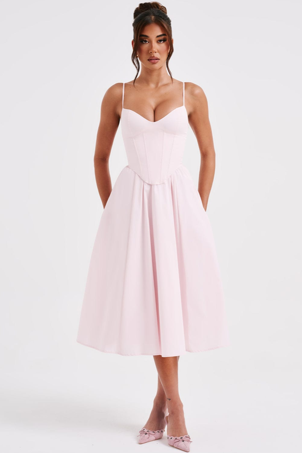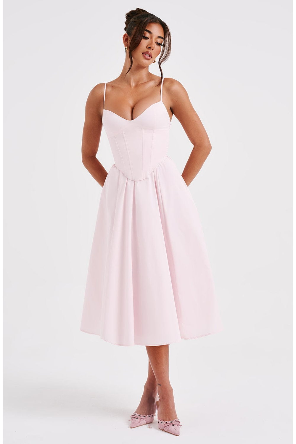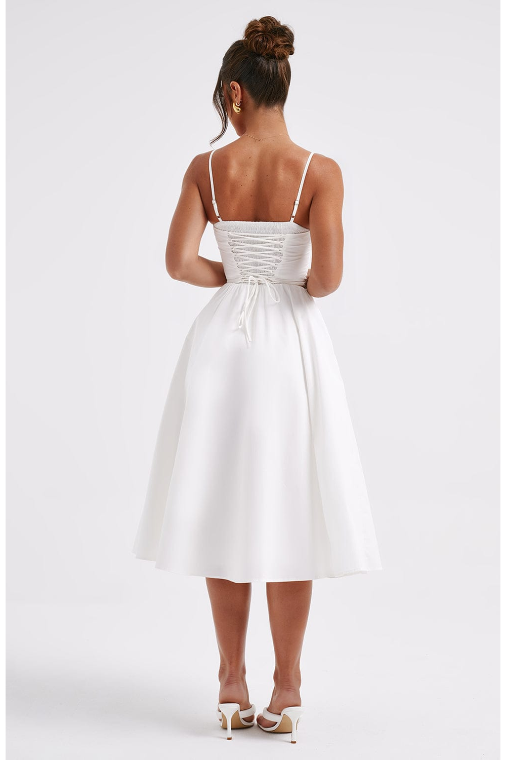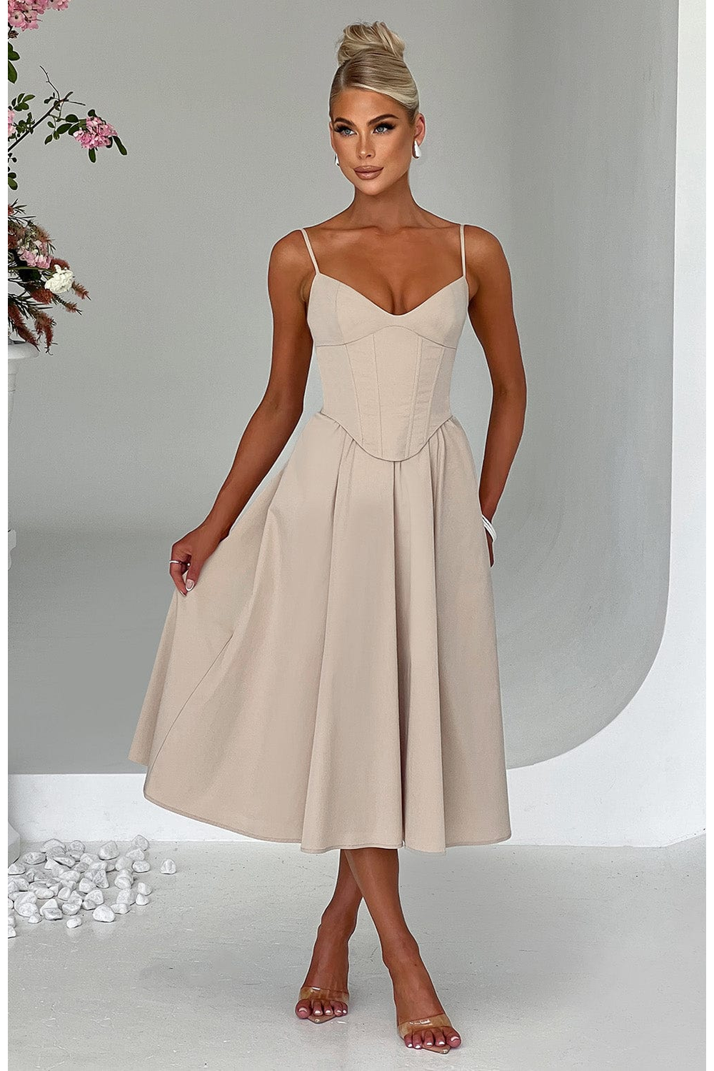 Bold, structured, and made to captivate, the Amara Midi Dress features a sculpted corset bodice and a voluminous skirt for show-stopping movement and shape. Perfect for formal evenings and unforgettable moments.