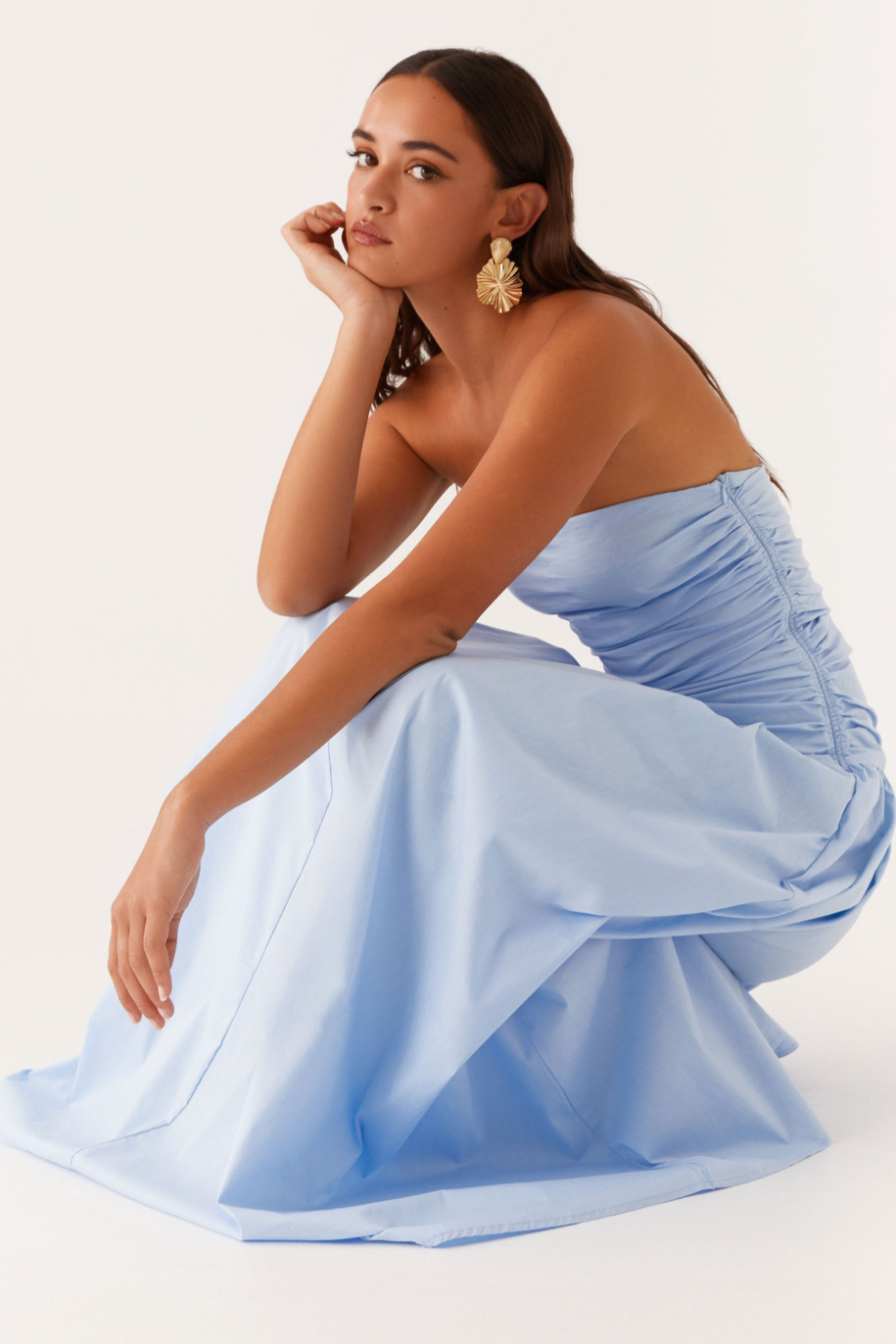 Effortless sophistication meets sunset-ready drama in the Carmel Maxi Dress. With flattering side ruching, a drop waist, and a voluminous flared skirt, this structured silhouette is crafted to move beautifully with every step. Fully lined and finished with silicone taping for a secure fit, it’s your go-to for elevated evenings and unforgettable occasions.