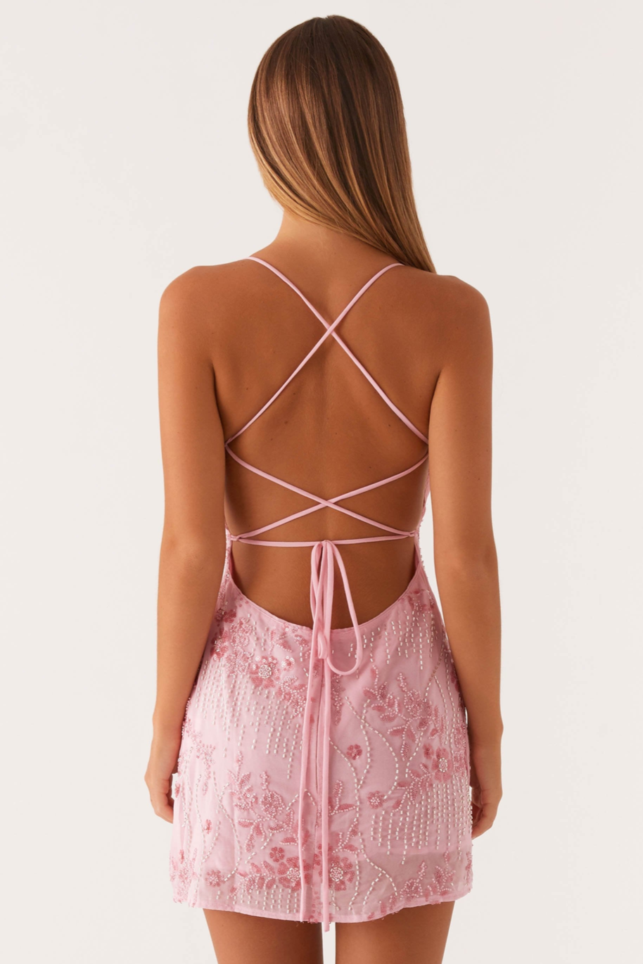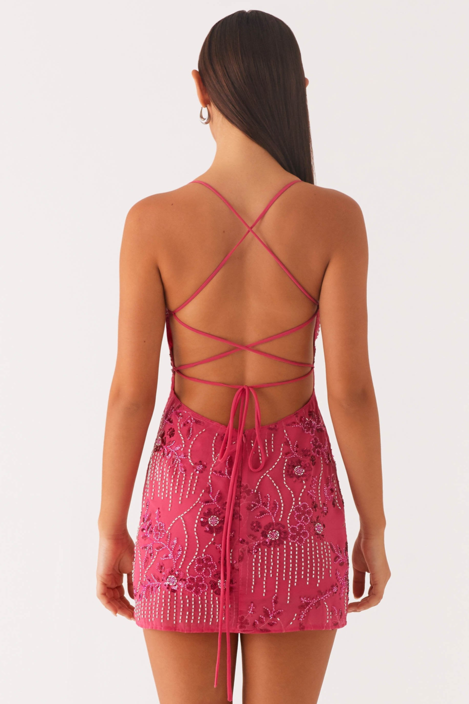 Shimmer through the night in the Noelle Sequin Cami Dress, a dazzling mini made to captivate. With a flattering V-neckline, open back, and criss-cross adjustable straps, this fully lined silhouette sparkles with every step thanks to its light-catching beaded fabric. The perfect piece for parties, events, or any moment made for the spotlight.